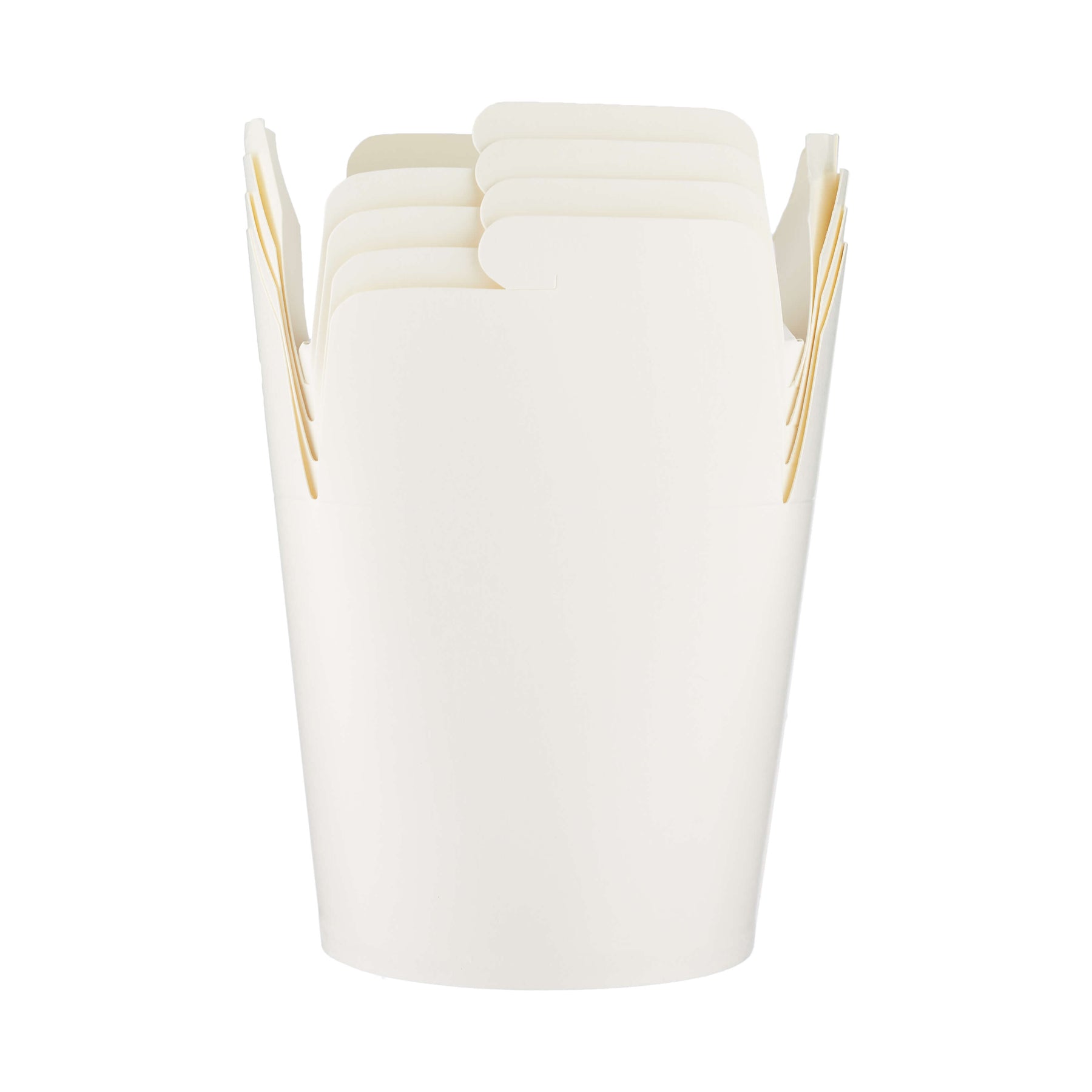 This round paper pail box take-out container's white exterior makes it a popular addition to trendy restaurants and cafes, wedding receptions, and Chinese / Asian eateries. Use it for just about any of your menu items. The leak-and grease-resistant packaging keeps hot, cold, wet, or dry foods fresh from kitchen to destination. Plus, the efficient one-piece design of the package maintains freshness by retaining heat and venting steam. This take-out container's versatile size makes it perfect for serving sides of fried rice, white rice, or lo mein. The container is designed with a convenient microwaveable design that's moderate heat lamp tolerant, too.
